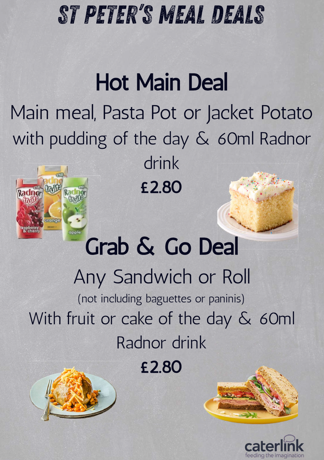 Catering at St Peter’s Secondary & Sixth Form is provided by external caterers, Caterlink. They focus solely on providing meals for the state education sector.