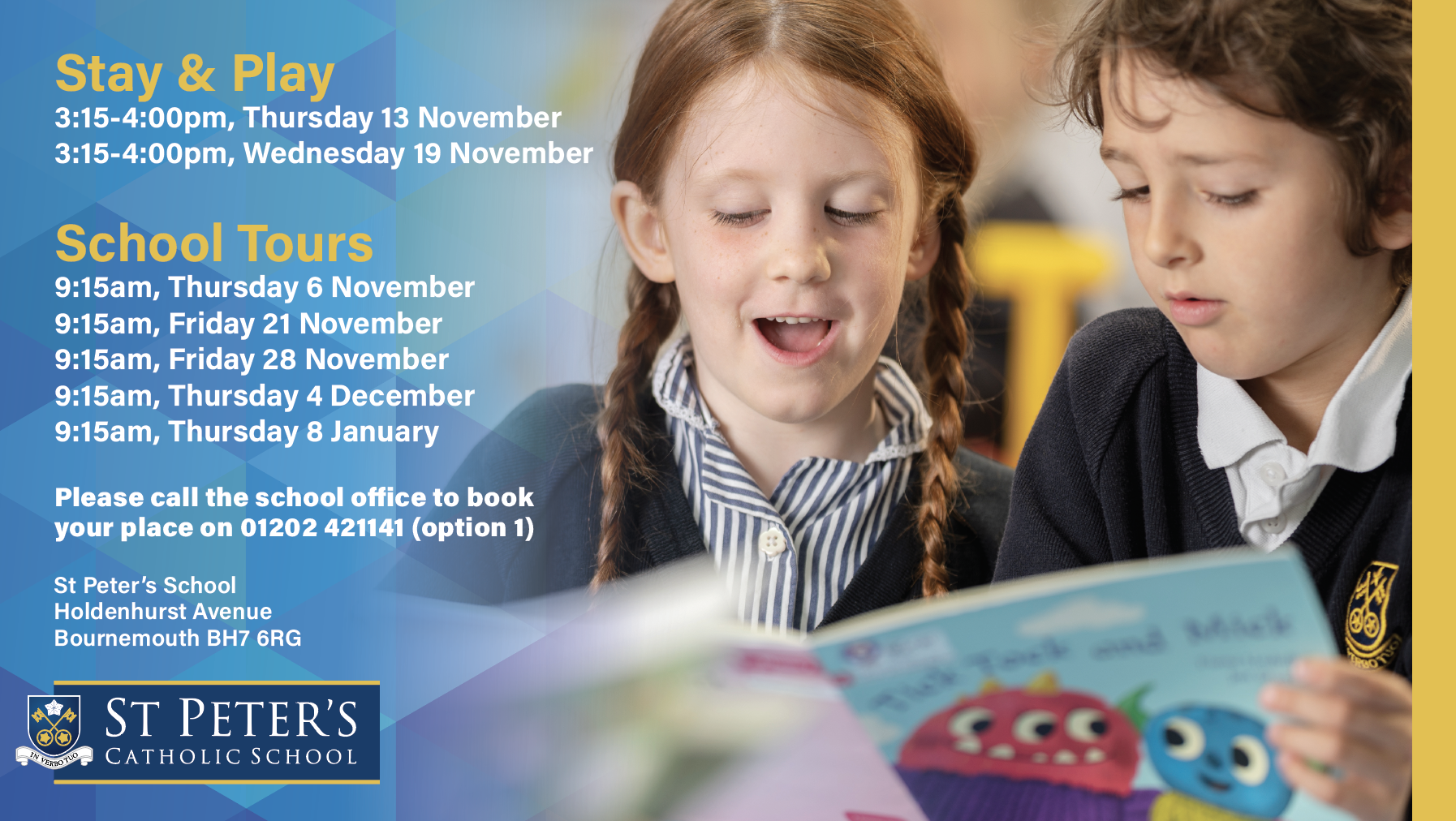 Should you have any questions, please contact our Admissions Officer, St Peter’s School, St Catherine’s Road, Bournemouth BH6 4AH